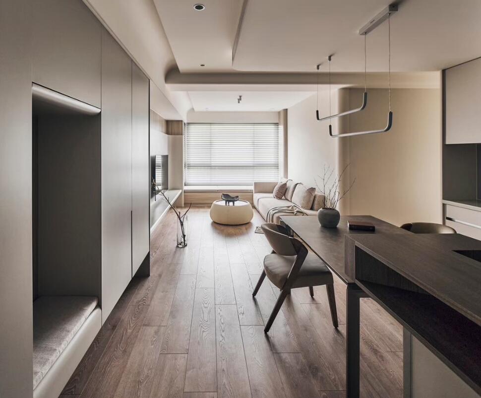 在濕氣較重的北部,室內設計除了要好看,材質的選擇跟施工細節更是關鍵。我們最引以為傲的就是「木作專業工法」,從櫃體到充滿設計感的造型牆,都是由我們新北大本營的自家木工團隊一手打造,而不是隨便外包。這樣做的好處是品質能自己控管,特別是針對空間有限的住宅,我們能透過精準的木作訂製,幫你把每一坪的坪效發揮到極致,同時確保家具的耐用度能經得起時間考驗。