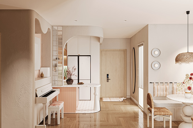其實新房子的最大好處,就是水電管線都是全新的,所以可以把預算集中在「把東西收好」以及「營造喜歡的氛圍」這兩件事上。我通常會建議參考「631 法則」:百分之六十留給必要的木作和水電微調,百分之三十拿來添購家電家具,剩下的百分之十則用來布置空間。